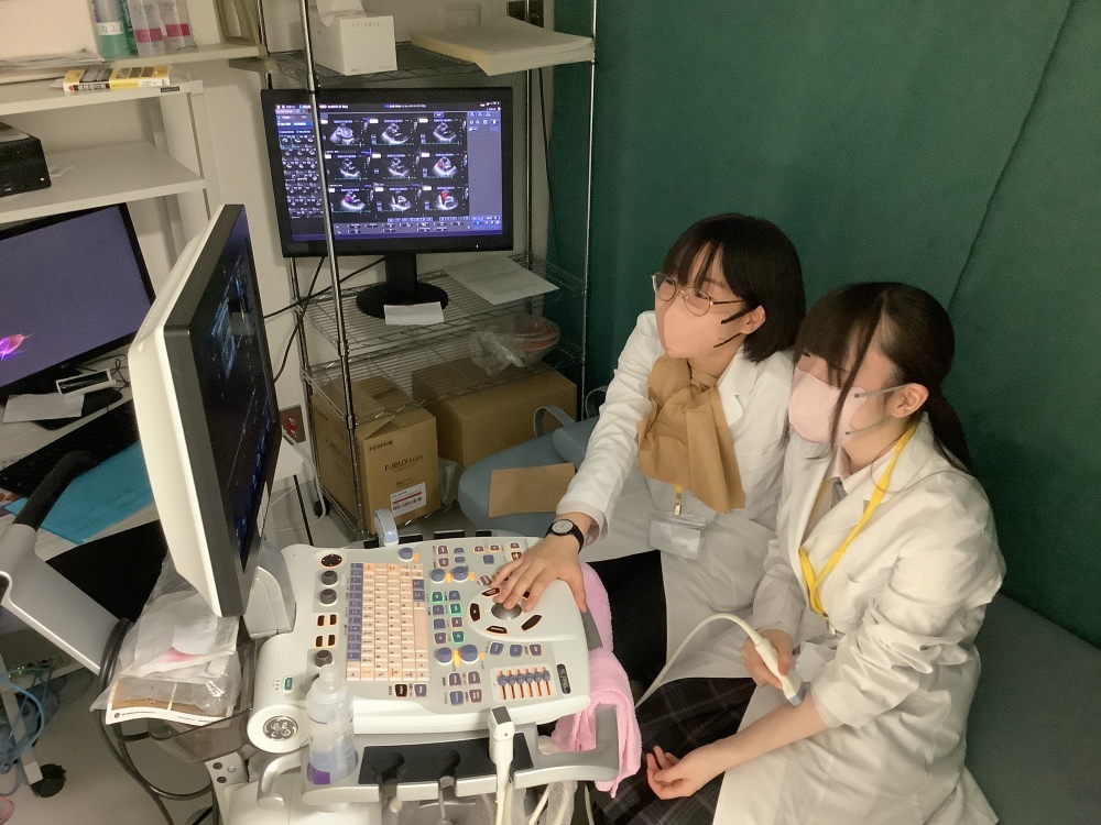 今回参加された21名は医学部進学を目指しており、曽ヶ端院長より、地域医療の現状や医療DX等についての講義や、実際の診療現場の見学、内視鏡や腹腔鏡手術機器、超音波エコーなどの体験をおこないました。